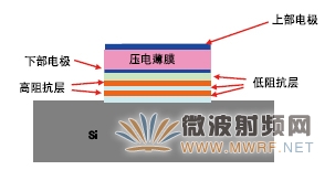 用于FBAR上的AIN等具有高达11300m/s的高体波声速。实际上,声速会因为电极的质量效果而降低,不过,决定频率的是压电薄膜的厚度。表示方法与SAW的相同、即λXfo=V不过,λ=2Xh。这里的fo为FBAR谐振器的谐振频率,V为压电薄膜的声速,h为压电薄膜的厚度。