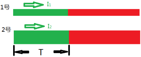 因为 i = Q/T (射频电流=电量/时间),那么可以知道2号线的射频电流是1号线的两倍(因为时间是一样的,2号线电量是1号线的两倍)。