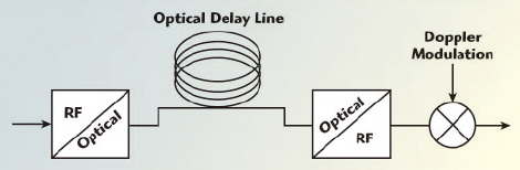 在雷达系统测试和测量中使用光纤延迟线(FODL) 已经有几十年了,例如,用于测量雷达系统的相位噪声,以及为无线电系统和雷达系统的户外距离测试模拟可重复性信号。这些相对灵活、相位相干的小型系统将雷达的射频信号转换成光信号并借助一定长度的光纤线对其进行延迟,然后再将经过延迟的光信号重新转换成射频并发射给雷达。一些系统能够引入多普勒频移,如图2所示。