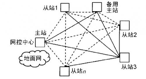 以MF TDMA 方式组网应用时,主站发送TDMA参考信号并作为全网各站的时间参考基准、一个备份主站用于主站出现故障时接替主站的工作。一般业务站以主站为参考,并按照主站下发的时隙表在分配给本站的时隙内发送信息。卫星通信网络的实现模型如图1 所示。