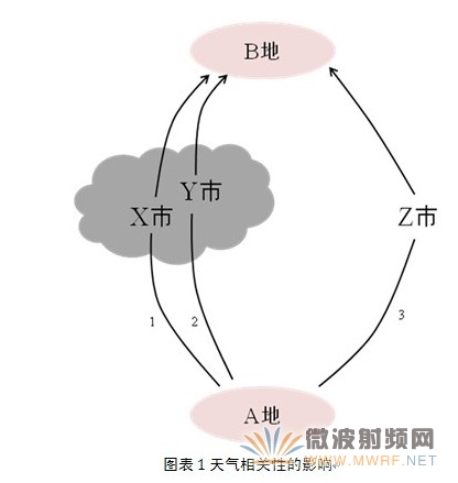 为了更好的理解相关性的概念,我们先来看一个例子。比方说我们有一车货物要从A地运到B地,有3条路可以选择,分别经过城市X,Y,Z。但X市和Y市的地理位置非常接近。在出发前我们听到天气预报说X市会有大雨,那我们一定会选择绕道走Z市,而不选择Y市。为什么?答案很简单,X与Y市离得那么近,若X市大雨,Y市天气也好不到哪去,这种天气间相互影响的现象就说明X市与Y市的天气具有相关性。所以用一句话概括相关性,就是“他好,我也好”。原来我们有3条路可选,但因为X与Y市天气条件近似,实则只有两条路线可选,其中一条神秘的“消失”了,这种现象对MIMO系统会产生什么样的影响呢?