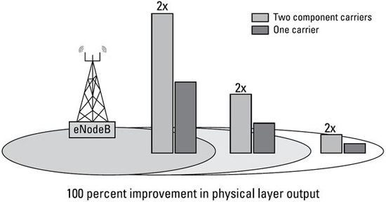在LTE-Advanced中使用载波聚合(Carrier aggregation),以增加信号带宽,从而提高传输比特速率。