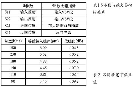 射频电路性能通常用4个散射(S)参数来表征。术语“散射”隐含着损耗的意思。反射,即散射参数S11与S12会减少有用的信号,反向传输S12从负载处返回输出功率,只有正传输S21是有用的散射参数。设计射频电路就是要减少S11、S22与S12而提高S21。射频放大器小信号交流参数可从S参数推得,两者的关系见表1,这些指标是频率依赖的。