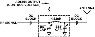 图1. 升压电源和高压DAC为BST电容提供调谐信号
