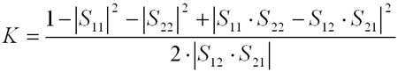 稳定性因子有多种定义的方法,ZVB支持三种稳定因子测量。稳定性因子的测量基于S参数的测量,其S参数的关系如下: