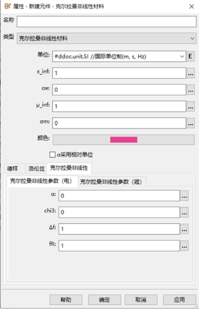 ③ 克尔拉曼非线性材料:克尔非线性模型用于模拟非线性参数不随频率变化的三阶非线性材料,可以用于任何结构模型。