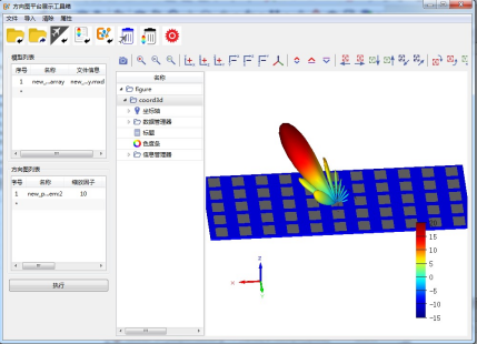 用于组合多平台天线、天线阵及3D方向图,并通过设置合适的参数(姿态、位置、角度等)达到合适的展示效果。