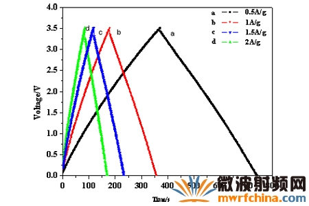 图1、电极材料不同电流密度下的充放电曲线