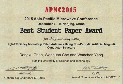 2015年亚太微波会议(Asia-Pacific Microwave Conference,APMC)于12月6-9日在南京金陵饭店举行。亚太微波会议是微波领域三大国际会议之一,是国际上微波技术、天线技术、微波毫米波集成电路、太赫兹技术、无线通信技术和电磁场理论等领域的最高学术交流平台之一。