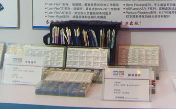 图为:现场展示的EMC&RF Labs的微波器件和线缆组件