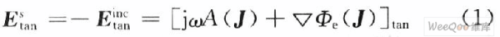 式中:Etan inc是入射电场的切向分量;Etan s为散射电场的切向分量;J为良导体上的感应电流。令L算子为: