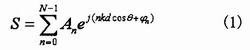 其中An为激励的幅度,θ为观察方向与直线的夹角,d为阵元间距。由于谐振阵各单元是同相的,即φn=O,则上式可简化为: