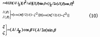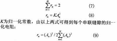 A.F.Stevenson利用洛伦兹互易定理及波导中功率的平衡方程,得到了串联缝隙的归一化等效电阻表示式为: