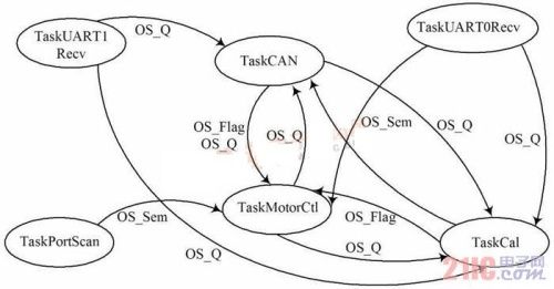 图4 任务之间关系及通信方式