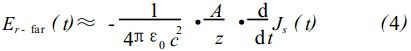 在远场的情况下,假设是沿着光电导体的轴线探测THz波辐射场,此时的THz辐射场可以表示为