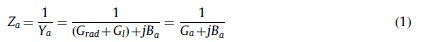 图1中显示了电小天线(ESA)的等效电路模型。在图中,Grad,Gl,和Ba是辐射电导,分别有金属导体损耗率,天线电纳。给出的Za为,
