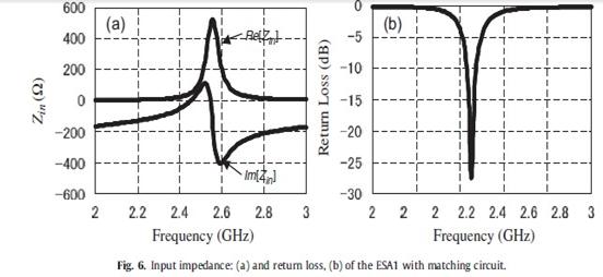 在这些ESA例子中,因为共振频率远远高于动作频率,这些类型的天线并不能像正常天线一样工作,它不仅仅须要与阻抗匹配电路相关联,而且与电纳补偿电路紧密联系。