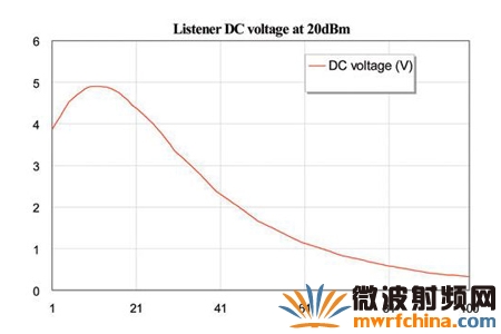 图2:整流的直流电压与发射/接收距离(单位:mm)的关系。