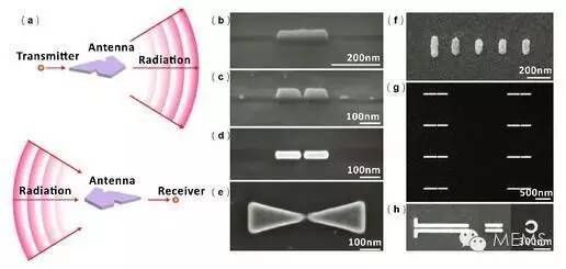 近年来,随着以电子束刻蚀(Electron Beam Lithography)和聚焦离子束刻蚀(Focused Ion Beam Lithography)为代表的“至顶向下”式纳米加工技术的日趋成熟,大规模加工纳米尺度的金属与介质结构成为可能,光频段电磁天线(简称光学天线)的研究也随之成为研究热点。