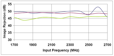 图5:各种WCDMA中频的镜像抑制与RF频率关系。