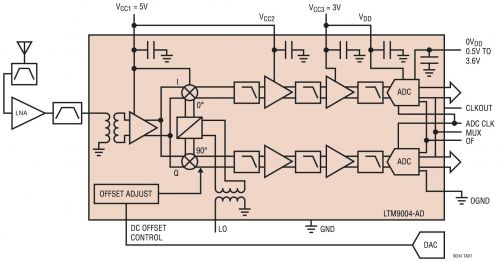 图 1:在 LTM 9004 微型模块接收器中实现的直接转换架构