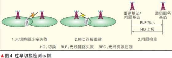给出了如下描述性定义:过迟切换指已经在服务小区驻留了一段时间的UE,在未收到切换命令的情况下,与服务小区连接中断,随后UE 选择了除服务小区外的其他小区进行了重建;过早切换指UE 在接入目标小区的过程中发生切换失败或在接入目标小区后短时间内发生连接中断,随后UE 在源小区进行重建;切换到错误小区定义为UE 在接入目标小区的过程中发生切换失败或在接入目标小区后短时间内发生连接中断,随后UE 在除源和目标小区外的其他小区进行重建。