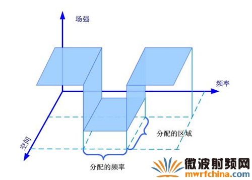干扰门限可定义为频率和空间内的场强,如图6所示。在给定频率和空间内,只有当有害干扰超出指定的干扰程度时,被授权者才可以投诉和索赔。在没有给出干扰门限的频率和空间中,不提供干扰保护和索赔。