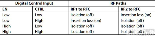根据上图所示,M器件的基本功能就是一个射频开关。RFcommon为公共端,通过偏置控制脚来选择公共端的信号与RF1或者RF2连接。注意其中电阻电容均为等效电路,实际的器件为AlGaAs工艺的PIN二极管。