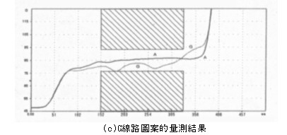 依此就可推论「线路图案直线部分」与「造成辐射最大值的波长」两者的关连性,也就是说线路图案直线部分长度较短的A、B、C三线路图案的辐射较低,相形之下D、E、F的辐射比较大;凹凸集中的D、E、F的辐射比凹凸分散的A、B、C大,G则无法纳入检讨范围。