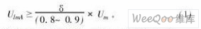 式中,Um为线路额定电压峰值,为电压升高率,一般取1.05~1.10
