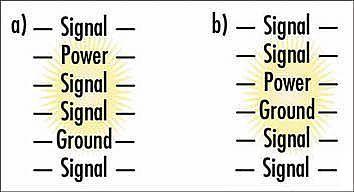 第二种方案的外层走电源和地,中间两层走信号。该方案相对传统4层板来说,改进要小一些,层间阻抗和传统的4层板一样欠佳。如果要控制走线阻抗,上述堆叠方案都要非常小心地将走线布置在电源和接地铺铜岛的下边。另外,电源或地层上的铺铜岛之间应尽可能地互连在一起,以确保DC和低频的连接性。