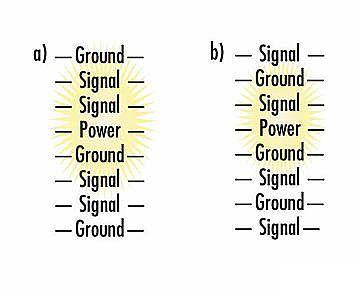 什麽样的堆叠策略有助於屏蔽和抑制EMI?以下分层堆叠方案假定电源电流在单一层上流动,单电压或多电压分布在同一层的不同部份。多电源层的情形稍後讨论。