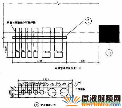 (4)水管进出水管等在屏蔽界面处作大于500mm长的不锈**过渡并加波导,但此做法的效果还有待考证。