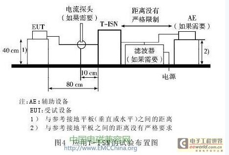 测量布置见图4所示,将T-ISN直接与参考接地平板相连。