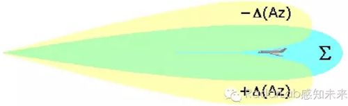单脉冲雷达系统中,至少需要采用空间分离的两组天线。通过比较和差通道,可以定位雷达波束照射范围内的目标。左右通道的反相耦合形成差通道(ΔAz),即方位差通道。在指向的方向上,和通道得到最大值,同时差通道最小值。由于和通道(Σ)和差通道(Δ)在一个脉冲回波就可以得到结果。所以,一个脉冲就可足以计算目标位置。(常常将这样组合天线的方式称为单脉冲天线)。和通道与差通道的比值提供了实际目标的指向和天线轴线(“前视”)的偏离程度,天线前视和目标实际的方位角之间的差别就是大家所熟知的“前视偏向角”。