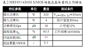 表2 MRF6V14300H SiMOS场效应晶体管的工作特性
