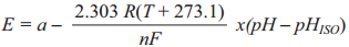 方程表明,产生的电压取决于溶液的酸度和碱度,并以已知方式随氢离子活性而变化。溶液温度的变化会改变其氢离子的活性。当溶液被加热时,氢离子运动速度加快,结果导致两个电极间电位差的增加。另外,当溶液冷却时,氢活性降低,导致电位差下降。根据设计,在理想情况下,当置于pH值为7的缓冲溶液中时,电极会产生零伏特电位。