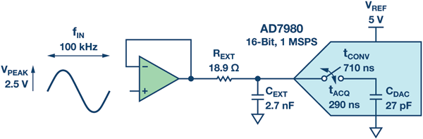 图3.采用16 位1 MSPS ADC AD7980 的RC 滤波器