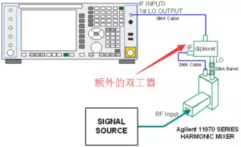 注意:PXA与混频器连接需要一个额外的双工器,这个双工器并不好配。所以,如果大家使用PXA的时候,建议有条件的用户购买是德的智(更)能(贵)型混频器M1970系列混频器,如图: