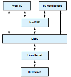 图9.通过PyADI-IIO和IIO-Oscilloscope与设备通信所需的软件组件框图