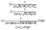 一旦选定并计算出电阻值,借助截止频率的简化表达式可以计算C的值,然后计算两个电容的值。