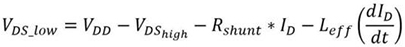 如上所述,在开启期间,VDD - VDS_high 实际上是恒定的。Rshunt和Leff 也是恒定的。 这意味着模拟的 VDS_low 走线波形是 ID的函数。