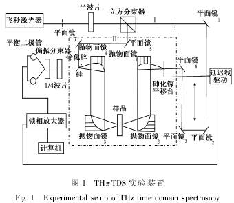 THz-TDS实验装置是由美国coherent公司制造的钦蓝宝石匕秒激光器和美国Zomega公司研制的太赫兹系统组成,结构如图1所示。