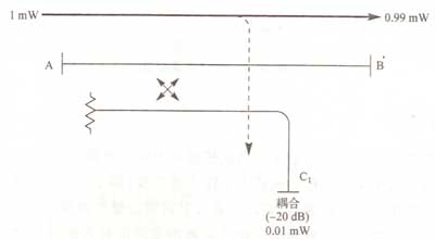 耦合臂只对行进在一个方向的信号取样。耦合信号处于降低了电平,降低电平的大小称为耦合系数。20dB定向耦合器意味着耦合端口的电平比输入低20dB,相当于入射功率的1%。余下的99%入射功率都通过主臂传送。定向耦合器的另一个重要特性是方向性。方向性定义为正向检测出的型号与反向检测出的信号之差。方向性不理想的原因是信号泄露、耦合器内部负载的反射及连接器的反射。典型定向耦合器将以30dB的方向性工作在几个倍频程范围。二电阻功分器(如下图)用于对入射信号或传输信号取样。