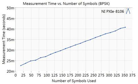 如圖 2 所示,如 BPSK 此種較長的叢集來說,若能分析僅部分的叢集而非各個符碼,即可大幅縮短量測時間。若使用數量較少的符碼,則可將此叢集的量測時間從 40 ms 縮短為 22 ms。此外,在較快的量測條件下,可重複性的結果僅可能稍微變差。