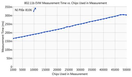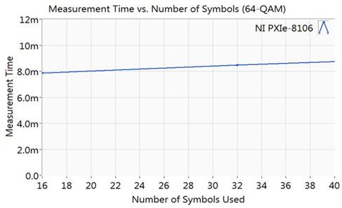圖 2 與圖 3 所顯示的結果,均使用了 NI PXIe-8106 控制器以加快量測速度。請注意,這些結果僅適用於某些條件。針對較長的 BPSK 與 QPSK 802.11a/g 訊號而言,僅分析部分叢集確實可縮短量測時間。