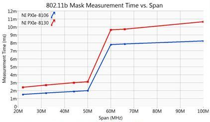 圖 5. 使用 NI PXIe-8106 Controller 控制器的WLAN 802.11a/g 遮罩對間隔 (NI RFSA 2.2 或更高版本)
