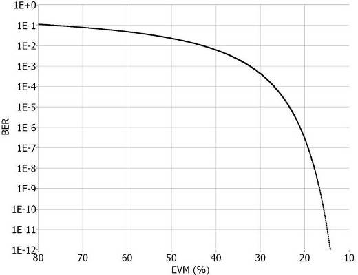 圖 3. QPSK 調變傳輸中的 BER vs. EVM
