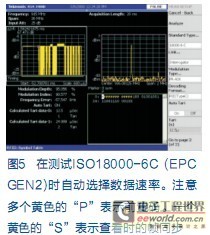 现代RTSA可以把频域、时域、符号域和其它域中的数据关联起来,全面迅速地分析复杂的RF环境和物理层交互。对于自动改变数据速率的ISO18000-6C (EPC GEN2)信号,这些仪器可以自动检测符号速率,突出显示前置码,更轻松地完成分析任务。