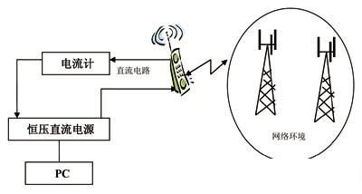 终端装配上相应的假电池,通过恒压直流电源提供所需的标称工作电压,由具备求平均值功能的电流计来测量终端的耗电电流,电流计的测量精度要在100μA以上。通常较为精密的恒压直流电源本身就具备精确测量输出电流的功能,因此若使用这类恒压直流电源则可以不需要使用电流计,直接从直流电源上读取电流数值。